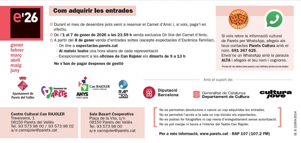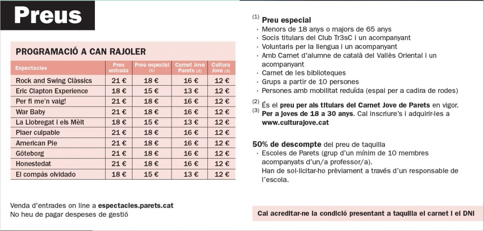 Compra d'entrades online pels espectacles a Parets: